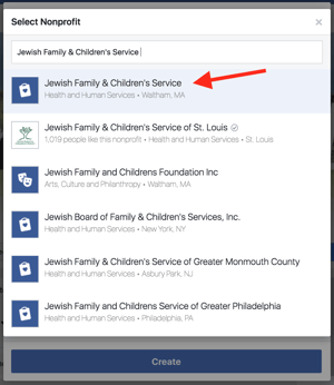 Step 3: Search for our nonprofit, Jewish Family & Children’s Service (in Waltham, MA).