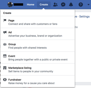 Step 1: Click on "Create" and select "Fundraiser" from the drop-down menu bar.