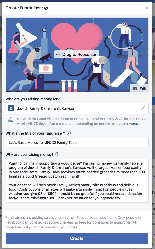 Facebook fundraisers are an increasingly popular way to raise money for nonprofits. To create a fundraiser for JF&CS Family Table, follow these simple steps: