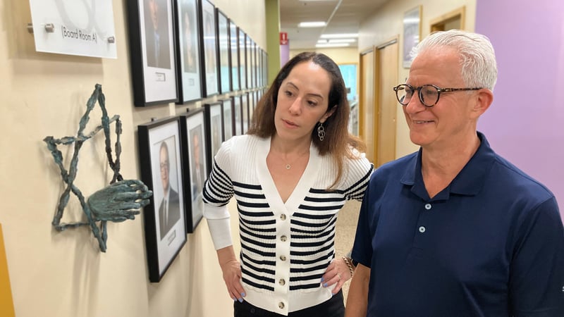 Pictured: Rebecca Ames, Director of Schechter Holocaust Services, and David Schechter, former JF&CS Board President and SHS Advisory Committee Chair, reflect on the meaning of “Remember Me.”